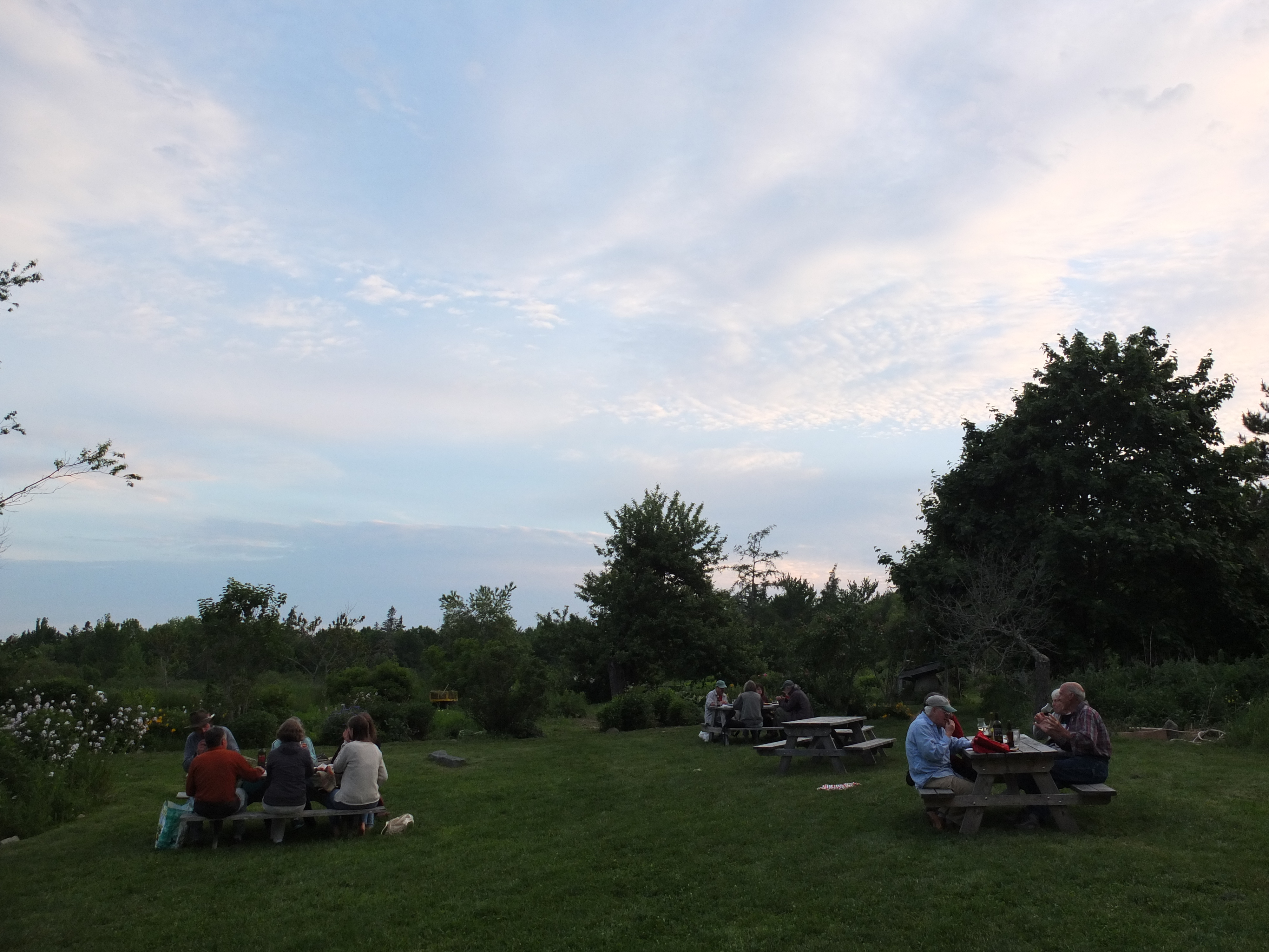 Und dann wird der Garten für ein paar Stunden zum Restaurant für Einheimische und Sommergäste. Tim sagt, im Sommer kennt er Dreiviertel der Gäste persönlich, im Winter alle. Dann sitzen sie in der Bäckerei, natürlich. Vor dem beeindruckenden Riesenofen, beschützt vor der Kälte Maines. Aber jetzt ist Sommer.