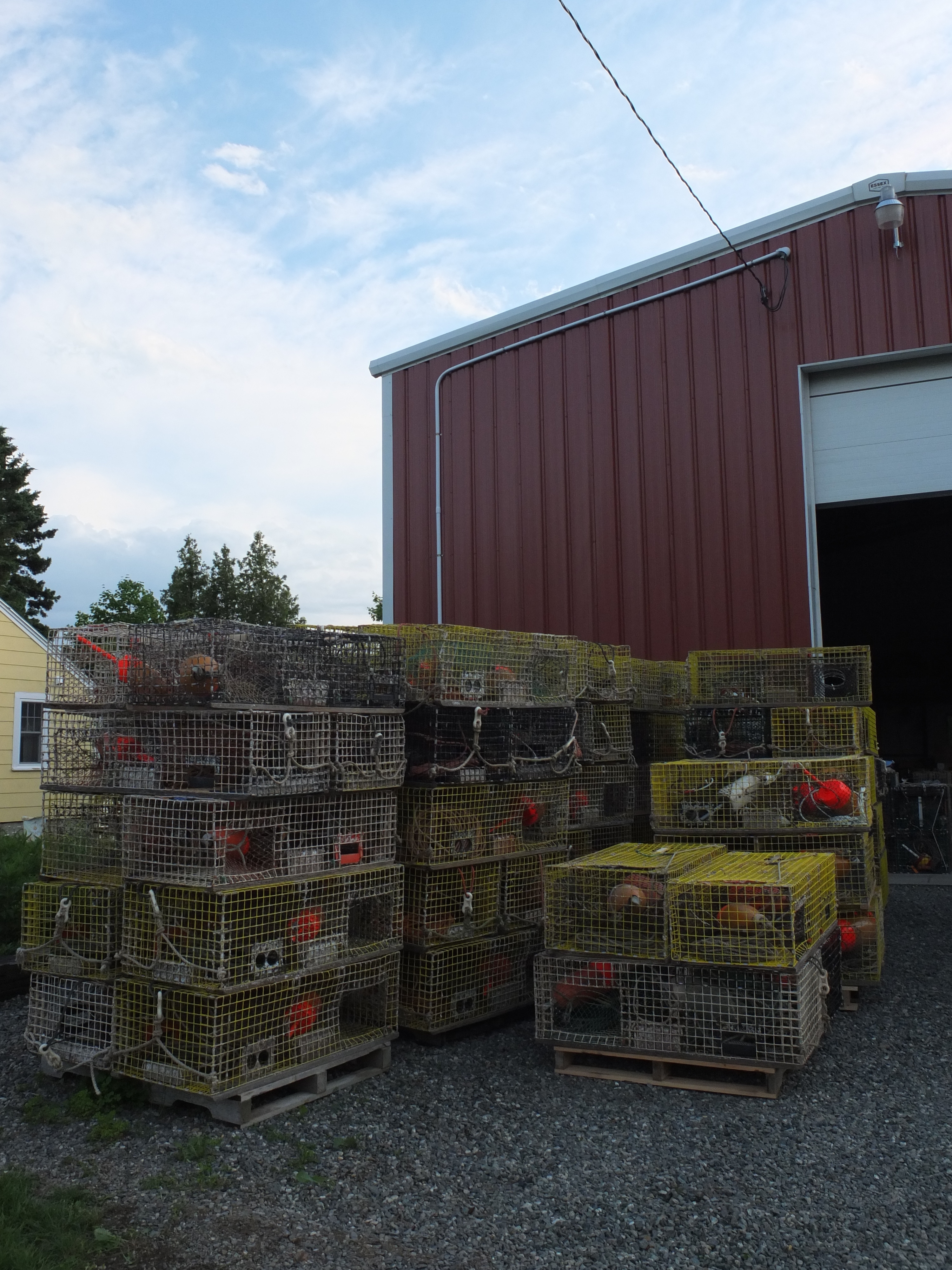 Die nächsten Hummer-Fallen-Stapel fallen gleich am Ortseingang auf – „Hier gibt es nur noch Hummer und Tourismus“, sagt Carol. Die Kabeljau-Fischerei sei tot, das Verschwinden des Kabeljaus ein Grund, warum es immer mehr Hummer gebe und die Preise gesunken seien. Und die Sardinen-Fabriken seien tot. Also die, in denen Sardinen in Büchsen gefüllt wurden. Vielleicht kein abwechslungsreicher Job, aber er bot eine weitere Möglichkeit, hier oben zu leben. Ein Thema, das im Laufe des Abends noch öfter auftauchen würde.