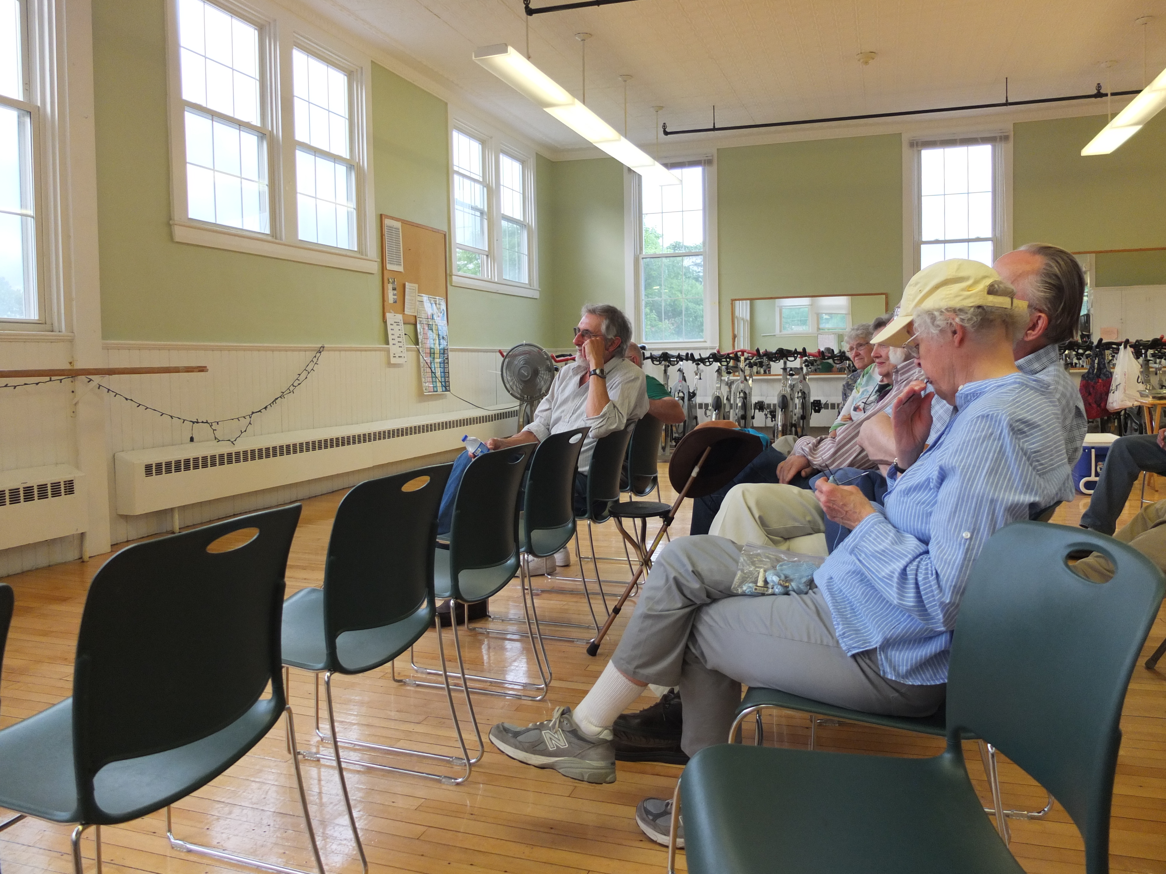 Unser Spaziergang endet im früheren Gebäude der Grundschule. In dem alten, für die Schule zu klein gewordenen Holzhaus werden jetzt Fitness- und Bastelkurse ebenso wie Vorträge angeboten. Dieser wird von der Historical Society des Ortes, der historischen Gesellschaft, veranstaltet. Also vom Heimatverein. Und hier ist nun Bob Quinn, der Geschichtenerzähler.