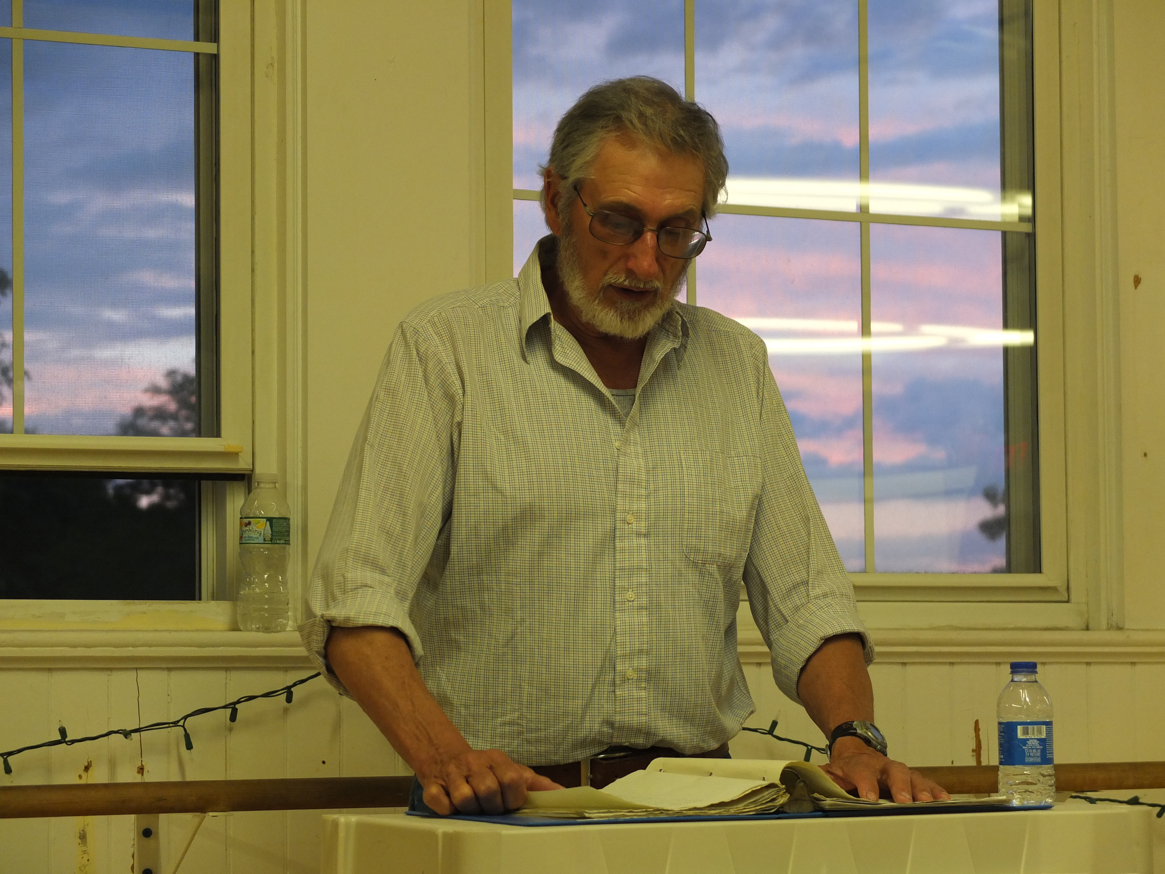 Bob erzählt launige Anekdoten aus seiner Familiengeschichte – wegen seines ausgeprägten Maine-Dialektes für mich nicht immer leicht zu verstehen. Aber die Gedichte seines Onkels deklamiert er klar und deutlich. Unter anderem machte sich dieser Onkel 1929 über die Weltwirtschaftskrise lustig und über das Bankensystem, das ihm sein Geld geklaut habe. „When I get my money back – I’ll keep it in my pants“, schlussfolgerte er damals schon.