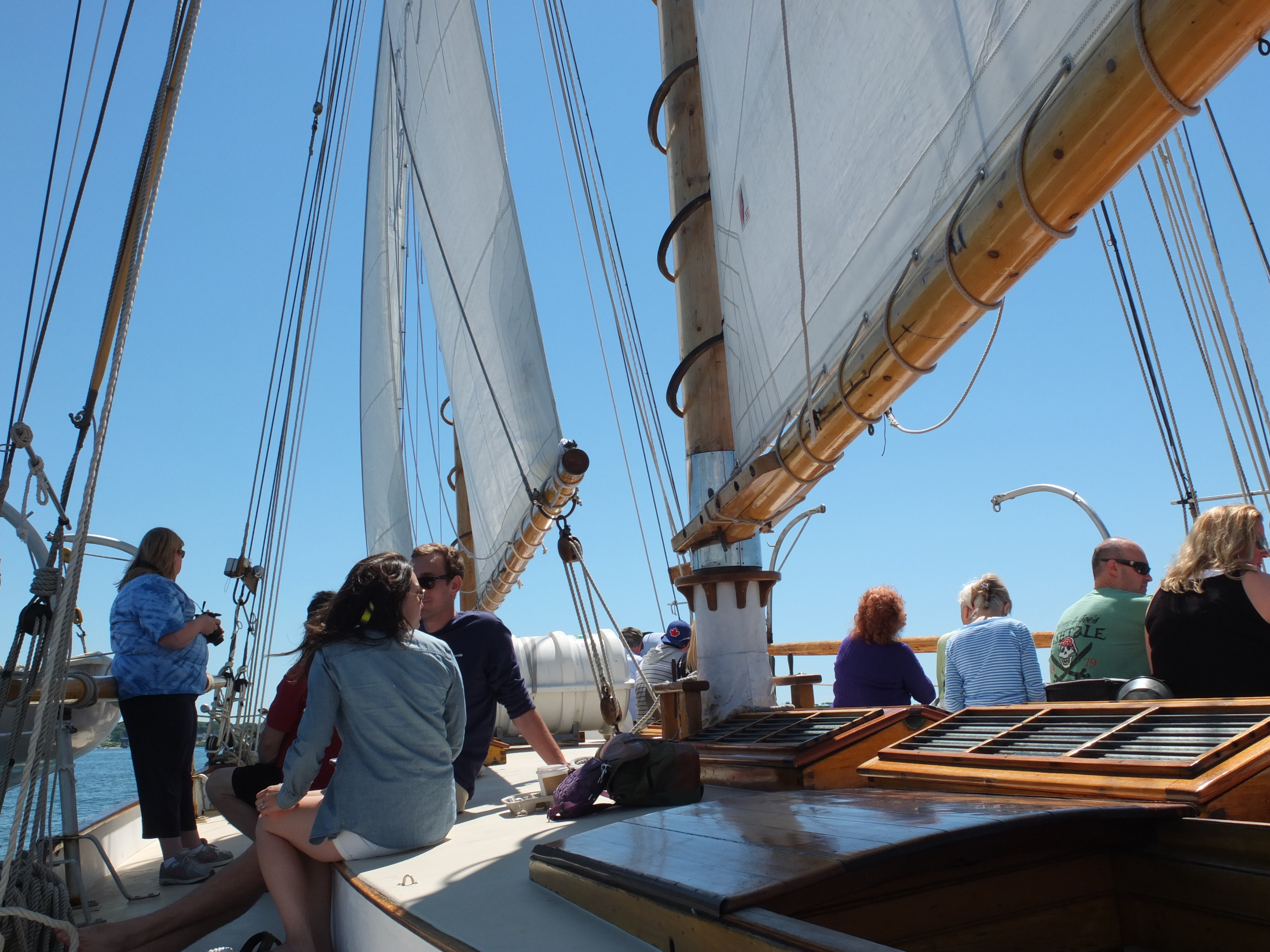 Aber dann sah ich das angepriesene Postboot, eine ziemlich große Motorfähre, bis oben hin voll mit Fracht und Menschen. Und laut. Direkt daneben dann der 102 Jahre alte Schooner Wendameen. Und dann: Genug Wind, um den Motor kurz nach dem Ablegen auszustellen. Eine Robbe, die direkt neben uns auftaucht. An Deck sitzen, in Ruhe gucken, plaudern, schweigen, Fotos machen. David Osbornes Geschichten zuhören. Das war’s wert.