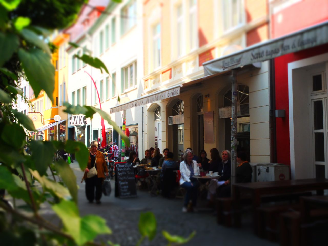 Vor dem kleinen Café sitzen sie. Zum Beispiel: zwei Männer und eine Frau. Ein Pärchen mit Single-Freund. Er erzählt von einem Tipp, den er bekommen hat. Münster könnte ihm gefallen, habe man ihm gesagt. Ja, Münster ist schön, bestätigt der Pärchen-Mann, fahr doch einfach mal hin. Aber der andere ist skeptisch: Wenn ich vor dem Bahnhof stehe, weiß ich doch gar nicht, wohin ich gehen muss. Ich kenne mich doch überhaupt nicht aus. Dazu die Menschenmassen. Ich kann Menschen nicht leiden. Kokettes, vielleicht auch verzweifeltes Lachen. Versuchsweise tröstliches Lachen bei den beiden Gesprächspartnern. Nein, sagt der Mann, ich bleibe lieber in meiner vertrauten Umgebung.