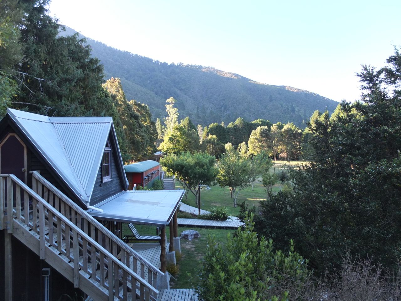 Nach fünf Minuten, in denen Tom mir schon sehr viele Fragen über mein Woher und Wohin gestellt hat, stehen wir auf einer Lichtung, und da liegt die Lodge. Am Wasser, umgeben von grünen Bergen. Ein großes Holzhaus und ein paar kleine stehen da, verbunden mit geschwungenen Holzstegen, umgeben von Gärten. Im Blockhüttchen schräg hinter der großen Outdoor-Badewanne schlafe ich.