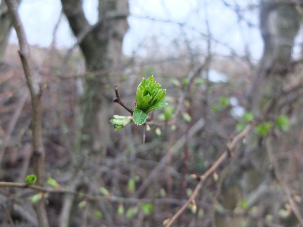 Dieser Frühlingstag ist etwas für bescheidene Menschen. Die können sich freuen, denn wieder hat sich der Anteil der Farbe Grün am Gesamtbild der Landschaft um etwa 0,0005 Prozent erhöht. Keine Frage, es geht vorwärts. Mir ist allerdings bewusst geworden, dass ich in dieser Sache unbescheiden bin. So lange man das Grün nur erkennen kann, wenn man dem Strauch quasi schon auf den Füßen steht, mag ich den Frühling nicht besonders. Denn sobald man dann hochsieht, kommt sowas: