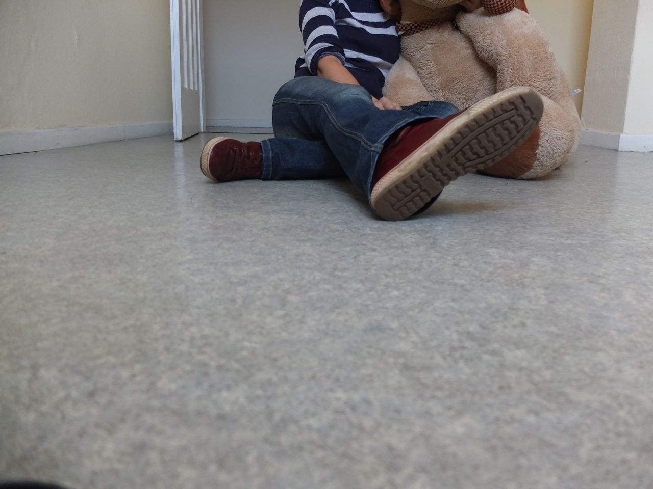 Es ist mit Selbstauslöser fotografiert. Zu sehen ist vor allem, dass ich in all den Jahren in dieser meiner geliebten Wohnung nie den Fußboden meiner Träume verlegt habe. Man gewöhnt sich schnell an graues Linoleum, wenn man handwerklich nicht herausragend begabt ist.